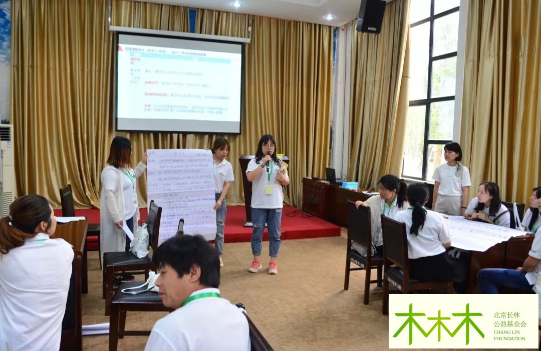 下午,大巴将所有人带回了彭墩。徐长军理事长为参训所有老师做了分享之后,各小组开始了组内讨论——做自我介绍、分享阅读教学的心得经验、选小组长、起组名和口号等,不少参训老师自愿上台同大家分享。