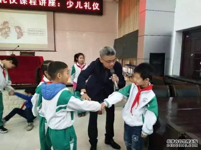 李旸老师由胡昀和相关学校负责人陪同,前往荆门市实验小学,进行少儿礼仪讲座。